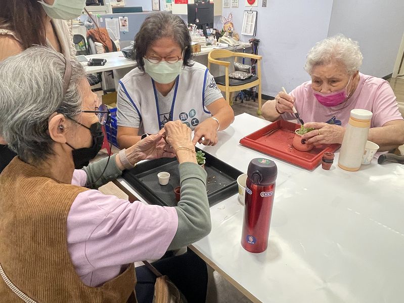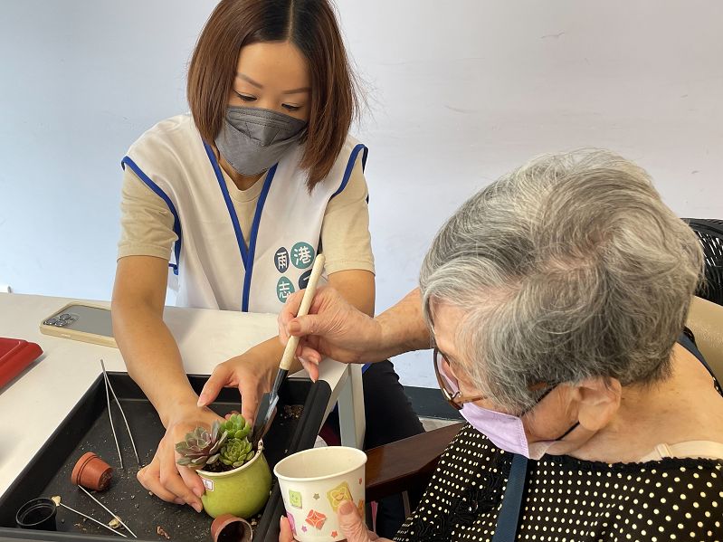 協助講師陪伴長輩進行植栽體驗、 帶動唱